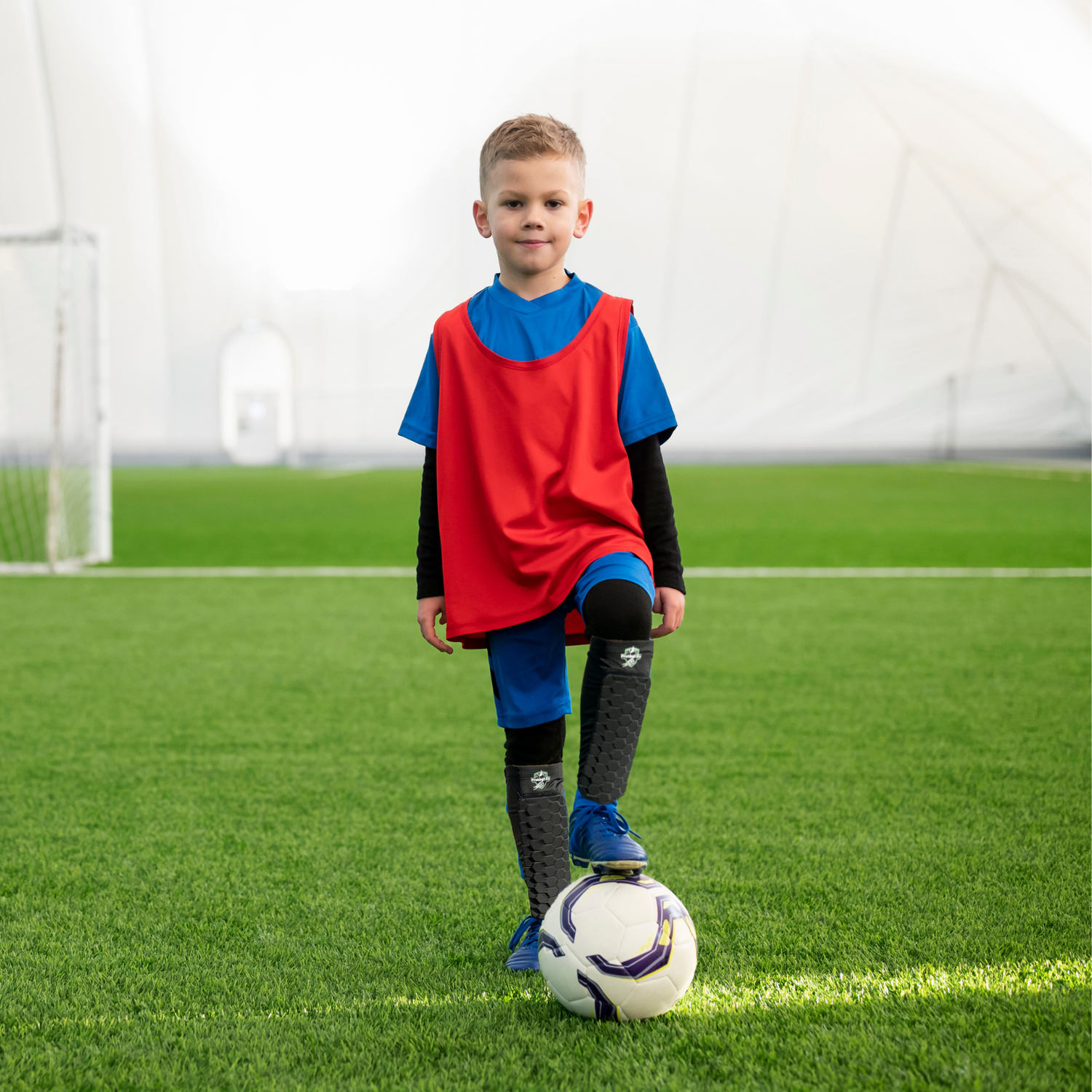 Unsere Schienbeinschoner sind in mehreren Größen erhältlich, passend für alle Altersgruppen und Körperformen.